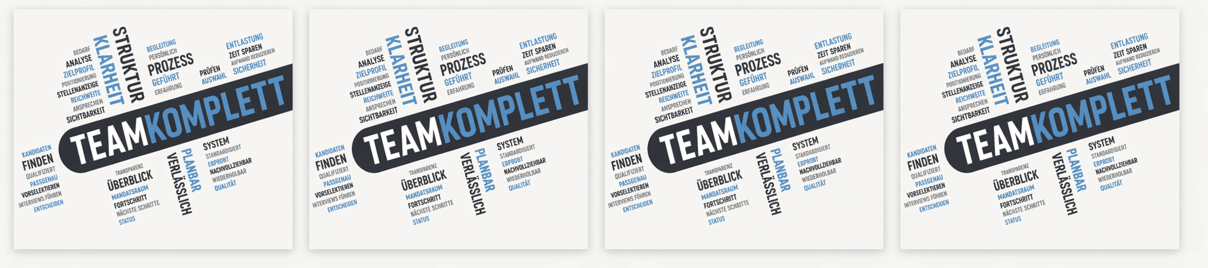 TeamKomplett unterstützt dich mit einem begleiteten Recruiting-Prozess der entlastet, funktioniert und auch für kleine Unternehmen bezahlbar bleibt.